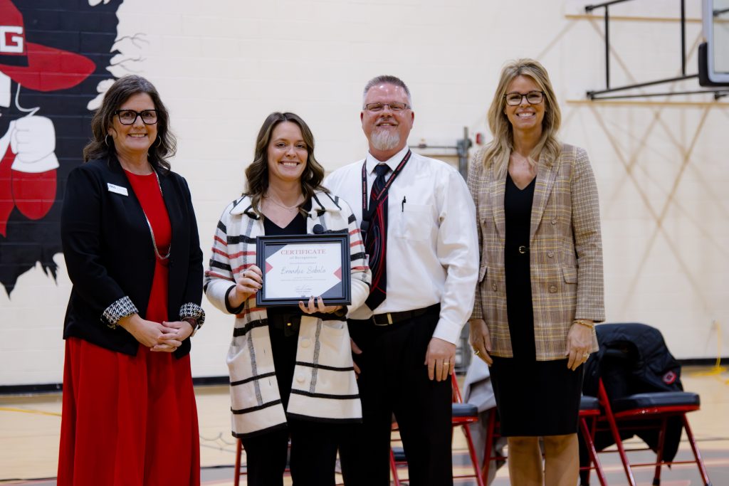 Photo from the assembly celebrating Brandee Sabala being named the Idaho Association of School Administrators’ 2026 Distinguished Principal Award winner.